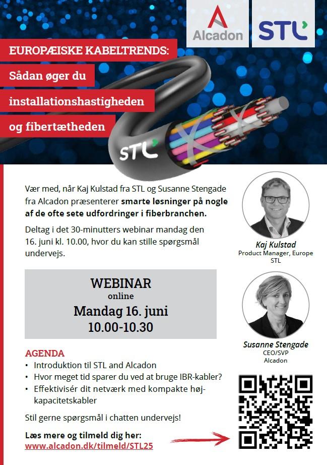 Susanne Stengade fra Alcadon har inviteret Kaj Kulstad fra STL til en snak om smarte løsninger på nogle af de udfordringer, vi ofte ser: installationshastighed og optimering af fibertæthed.